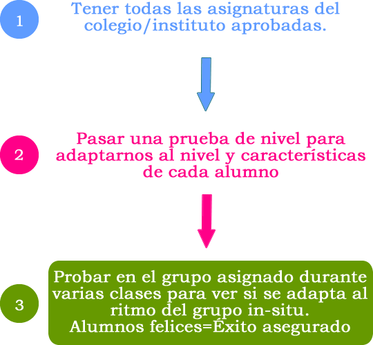 Cuando un alumno de más de 8 años quiere formalizar su matrícula con nosotros,y al terminar cada trimestre le pedimos siempre sus últimas notas obtenidas y que todas sus asignaturas estén aprobadas.
